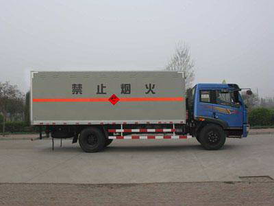 厢体顶部密封,不可开启。可选装无侧门厢体。仅采用CA6DE3-18E3发动机,运送爆炸品的品名:三硝基苯酚、环四次甲基四硝胺、环三次甲基三硝胺、三硝基甲苯、季戊四醇四硝酸酯等。运送爆炸品的项号:0154, 0226, 0484, 0072, 0483 ,0209 ,0150 ,0411等 |
