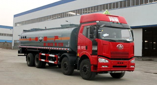 运送介质品名:亚硫酸;介质密度:1030千克/立方米;类项号:8;罐体有效容积19.0立方米;罐体外形尺寸(长×长轴×短轴)(mm):9200×2150×1350。防护材料:Q235A碳钢,连接方式:左右侧面及后下部防护均采用焊接连接,后部防护断面尺寸(mm):100×50,后部防护离地高度(mm):520, 随底盘选装平顶驾驶室整车高为(mm):3100, 额定载质量 18700kg对应准乘3人, 额定载质量18765kg对应准乘2人, 前轮安装盘式制动器,装配限速装置,限速79km/h, ABS系统生产厂家1:浙江万安科技股份有限公司,型号:VIE ABS-Ⅱ,ABS系统生产厂家2:WABCO,型号:4460043200。仅采用CA6DL1-28E4发动机,对应油耗值为(L/100km):44.49。安装带有卫星定位功能的行驶记录仪,仅采用底盘子午线轮胎(10.00R20,11.00R20)和带ABS的底盘。 |