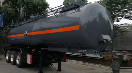 采用适用于牵引危险品半挂车的牵引车。选装不同样式的挡泥板,可选工具箱位置。可选装衬塑工艺。运输类项号:8,罐体有效容积:28.2立方米,罐体尺寸:长9900mm,直径(前/后)1950mm/2150mm。防护材料:Q235A碳钢,连接方式:左右侧面及后下部防护均采用焊接连接,后部防护断面尺寸(mm):140×50,后部防护离地高度(mm):500。ABS生产厂家/型号:梁山海纳电子科技发展有限公司/HNABS-4S/2M。危险货物运输车辆的类型(AT型车辆)。 |
