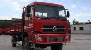 东风6驱康明斯190马力越野载货车:采用平头双排6*6越野载货车,东风康明斯190马力增压中冷柴油发动机,12.5R20加宽无内胎越野轮胎,5档机械式变速箱,前后桥驱动,带冷启动,防空灯,副油箱,机油桶、水桶,工具箱等军用附加设施,并带棚杆和蓬布,无空调,无绞盘。可在此越野底盘基础上改装成越野自卸车,油罐、洒水车、随车吊等专用越野车型。
